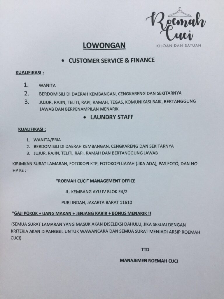 Customer Service/Kasir untuk Lowongan Kerja Laundry Terdekat